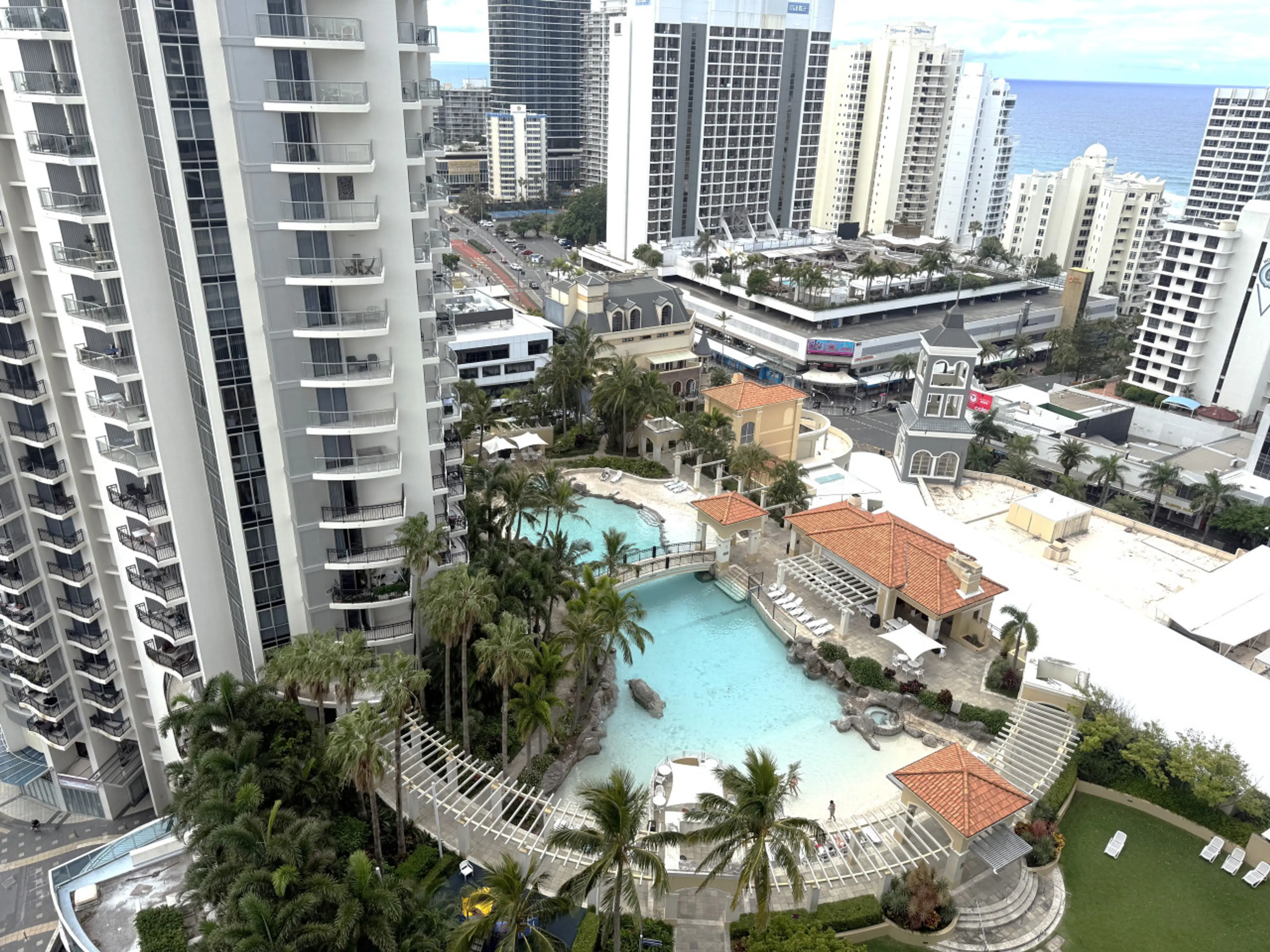 Spacious 2-Bedroom self-contained Apartment. Sleeps 2 Adults & 4 kids Ocean views overlooking the pool area Resort facilities include Multiple outdoor pools Indoor pool with gym and sauna Secure parking included. Level 19 Skyline towers central. Walk to Surfers Paradise beach, Cavill Ave Shops Chev...